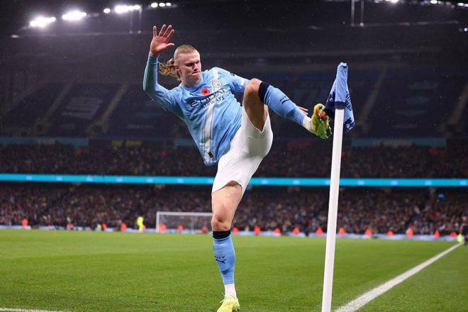 第28分钟,努内斯右路横传,哈兰德头球吊射破门,1比0!