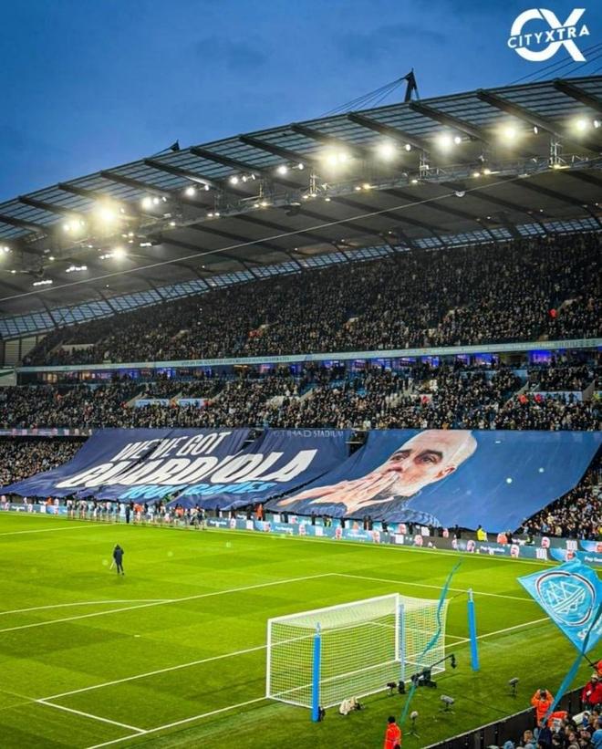 对曼城、瓜迪奥拉来说,此役还有着特殊的意义,这是瓜迪奥拉执教生涯的第1000场比赛,曼城球迷在开球前打出巨大TIFO致敬瓜迪奥拉。